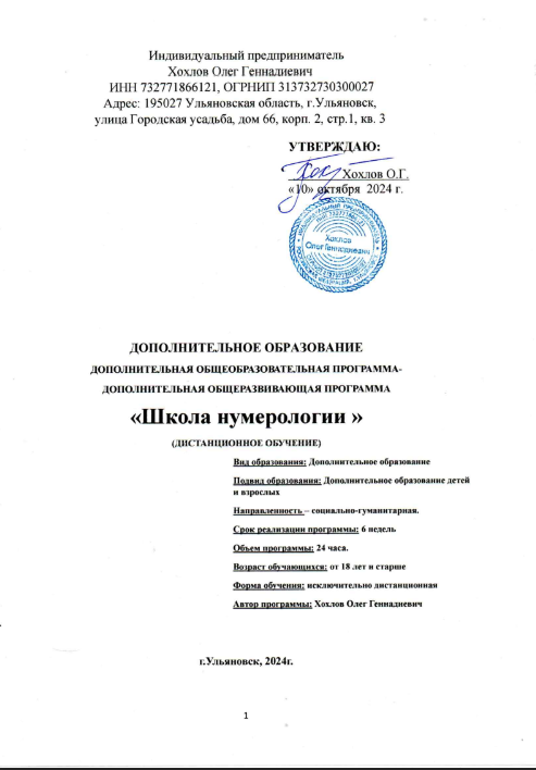 Образовательная программа «Школа Нумерологии